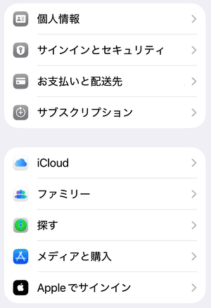 「設定」アプリ > 「自分の名前」で次の項目を管理します。