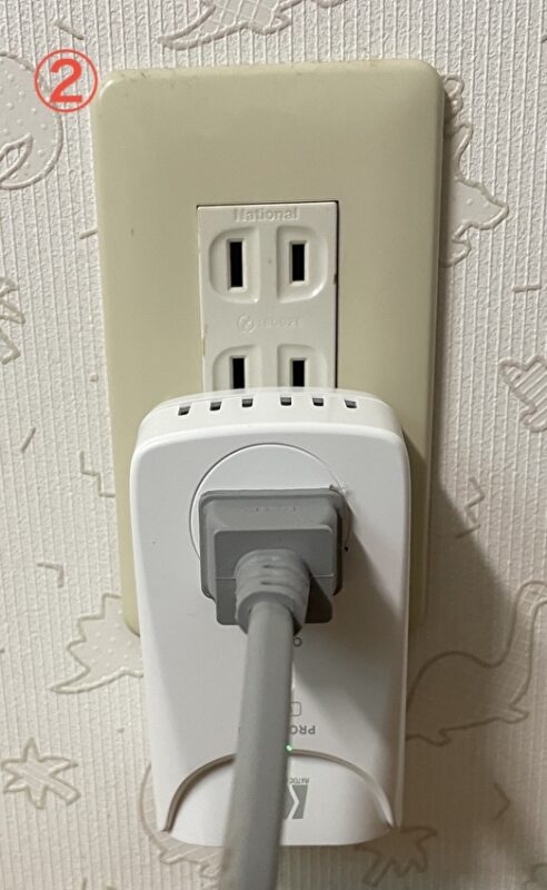 - 写真②の状態で家電製品にコンセントを差し込みます。
